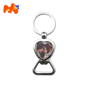 Portachiavi apribottiglie da uomo d'affari di moda coppia a forma di cuore stampa fotografica sublimazione blanks portachiavi in metallo